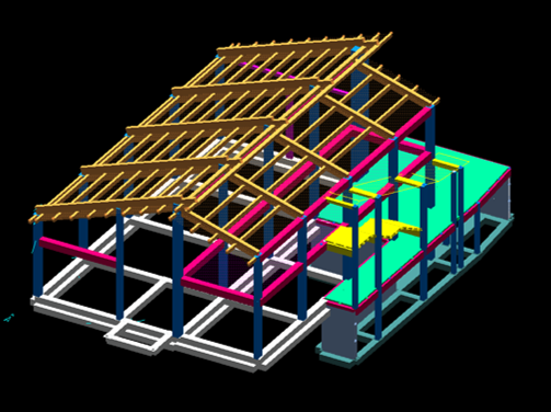 La struttura portante è essenzialmente in c.a.o., con copertura in travi di legno lamellare.